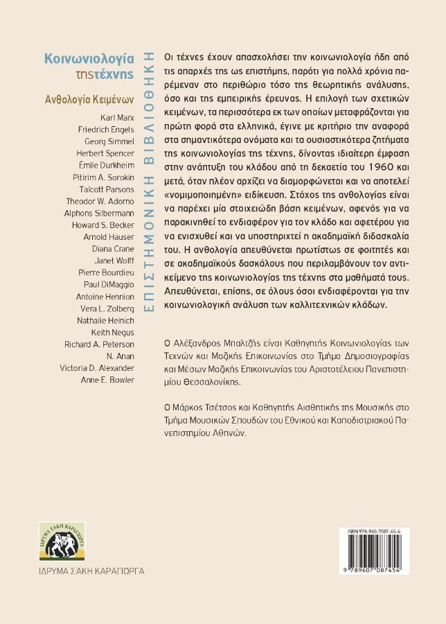 Το Ίδρυμα Σάκη Καράγιωργα διοργανώνει την παρουσίαση του συλλογικού τόμου «Κοινωνιολογία της Τέχνης. Ανθολογία Κειμένων», που εκδίδεται το 2025 και αποτελεί σημαντική συνεισφορά στη μελέτη της σχέσης τέχνης και κοινωνίας στον ελληνόφωνο ακαδημαϊκό χώρο. Η εκδήλωση πραγματοποιείται στο Εθνικό και Καποδιστριακό Πανεπιστήμιο Αθηνών και προσκαλεί το κοινό, τους φοιτητές και κάθε ενδιαφερόμενο να γνωρίσουν το έργο και να συμμετάσχουν στον ανοιχτό διάλογο που αυτό ανοίγει.